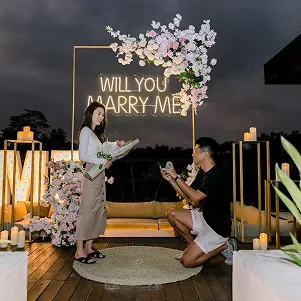 Imagine popping the question against Baliโs stunning golden sunsets, on a secluded beach with waves gently crashing, or in a private villa under a canopy of fairy lights. Whether you dream of a grand surprise or an intimate moment just for two, we bring your vision to life with exquisite details and thoughtful touches.